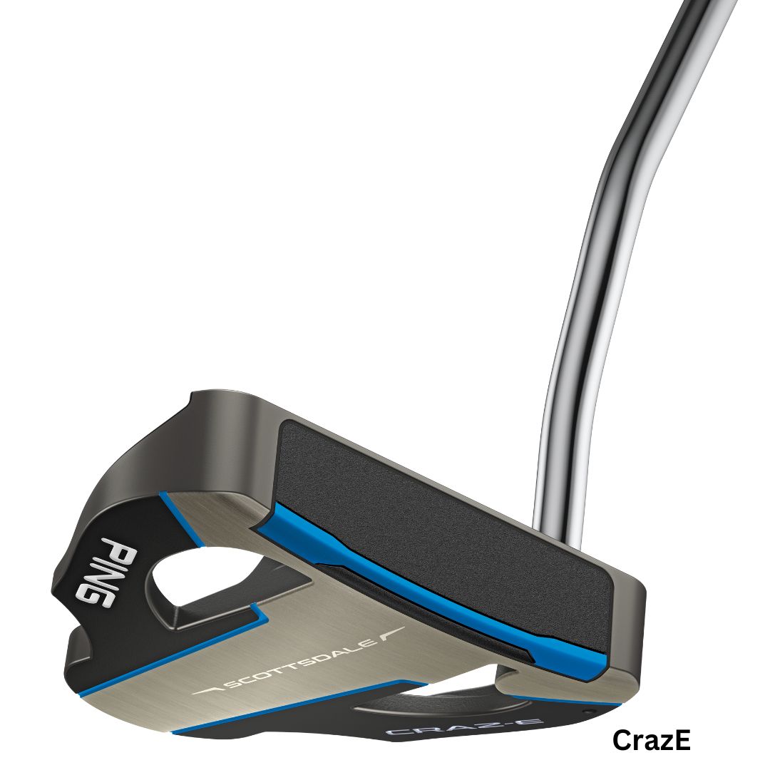 The Scottsdale family combines a one-piece face insert with a big jump in forgiveness across model styles and stroke types to fit every golfer and elevate performance on the greens. The lightweight PEBAX insert creates discretionary weight used to increase MOI while ensuring a soft feel, a pleasing sound, and consistent ball speeds. Available in new SuperStroke pistol-style grips both standard and counter-balanced (Craz-E model only) to promote stability through the stroke.