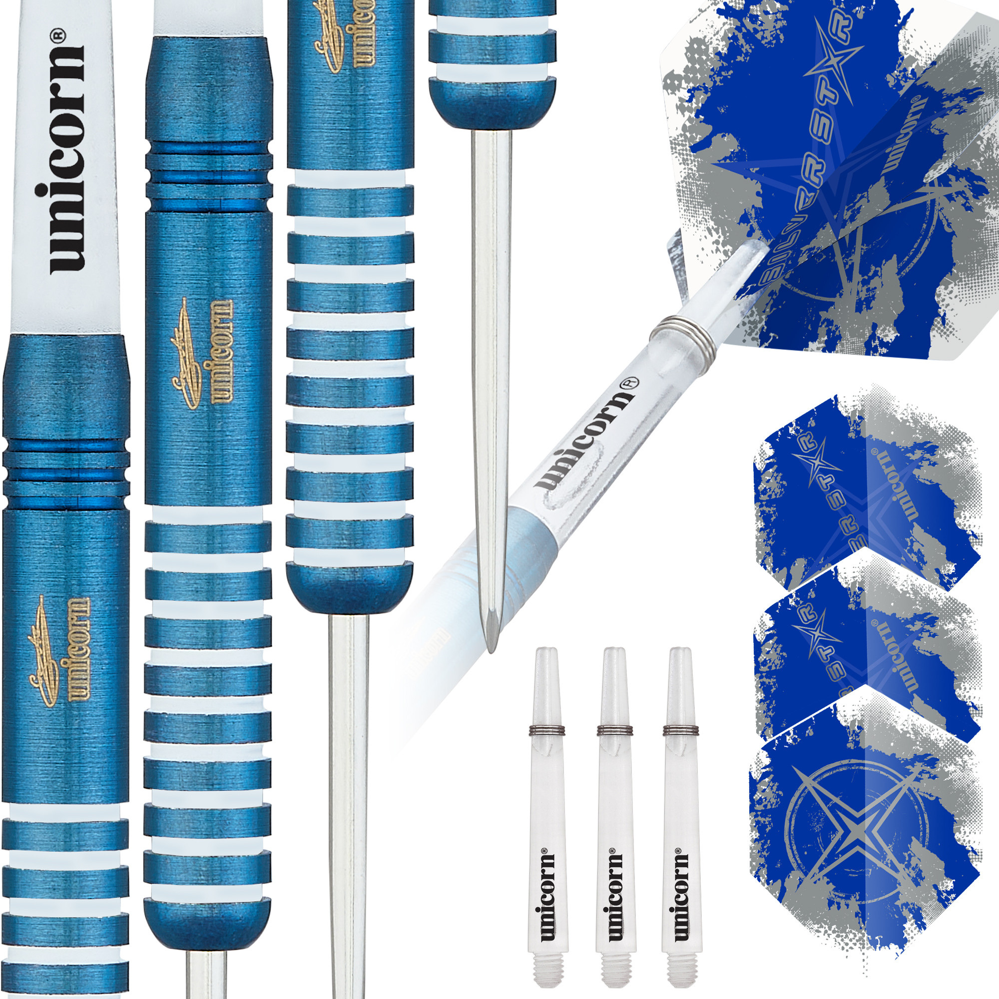 Unicorn Blue Silver Start Gary Anderson Steel Darts – 80% Tungsten