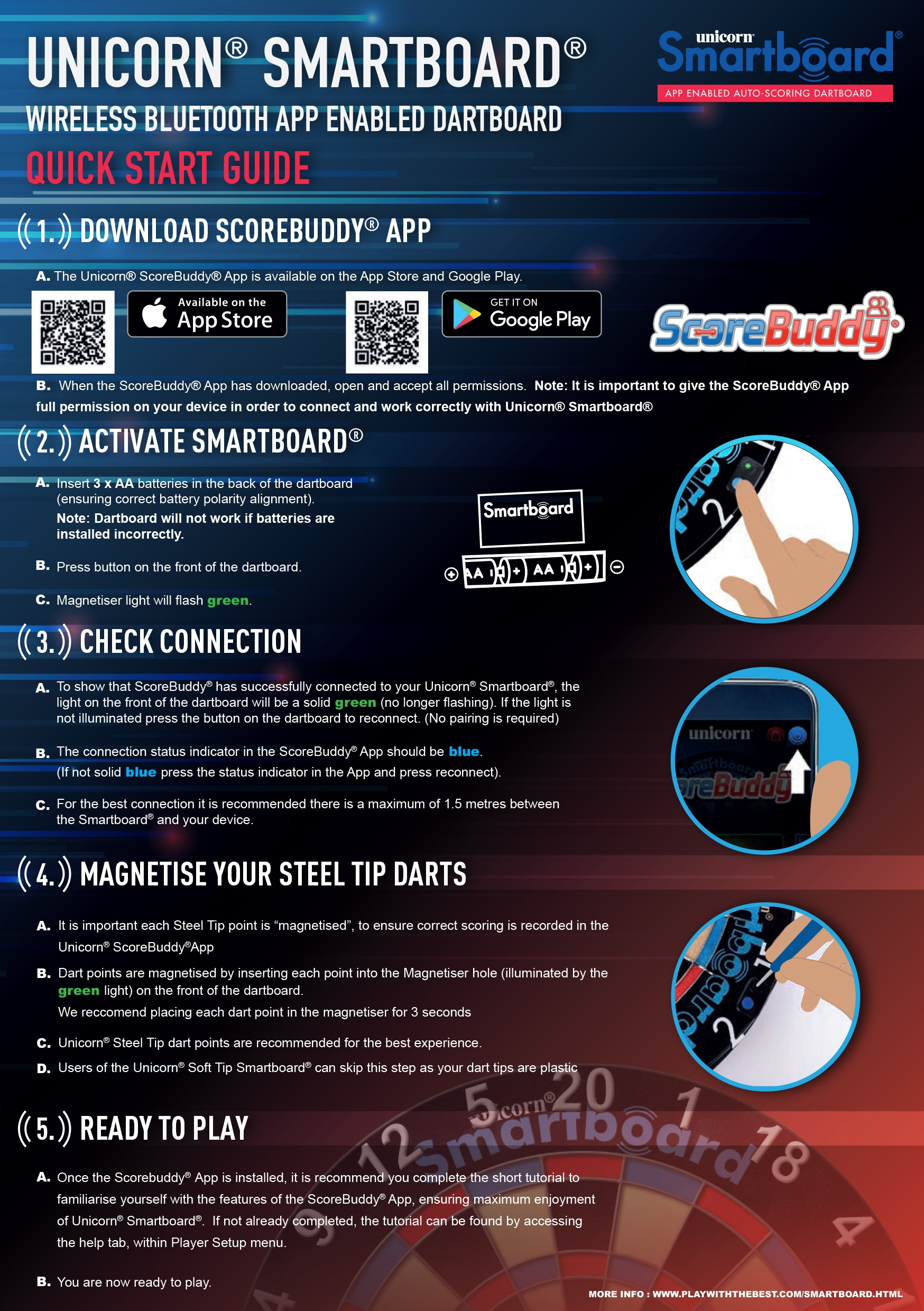 Updated Unicorn Scorebuddy® App – Now featuring Party Mode, the Scorebuddy® app lets you create private lobbies to compete with friends in tournaments—either together or head-to-head. Popular games like Killer and XO1 now include more difficulty levels, sets and legs for even greater variety and fun.